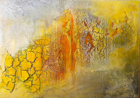 Ich liebe die Natur, das Wasser und besonders das Meer. Deshalb tauchen in den letzten Jahren immer mehr Blautöne in meinen Bildern auf. Strukturen geben ihnen die von mir gewünschte Tiefe. Ich stelle alle Strukturpasten selbst her, zum Teil aus Sumpfkalk, Marmormehl und den verschiedensten Steinmehlen. Die Bilder sind meistens vielschichtig. Übermalen, Überkleben, Überspachteln, Schütten, Zerstören und Neugestalten gehören zu meinen Arbeitsprozessen. So dauert es oft Tage bis ein Bild wirklich fertig ist.